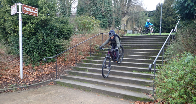 Aujourd’hui sortie « urbaine » pour éviter la boue. Quelques marches en ville Pontiffroy et Plan d’Eau : çà se monte, ça se descend, quelques saut et retour par les « 7 Virages », un peu de « bucheronnage » Chemin des Amoureux (22 km, 270 D+). Chaleur et gâteaux de retour au gite.
